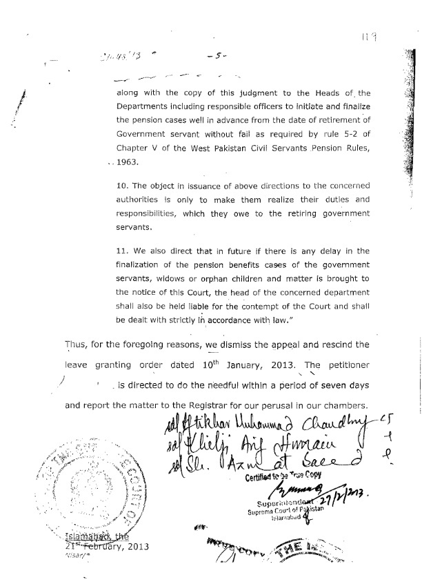 کیا ہم اپنے پنشن کے کاغزات کے ساتھ کورٹ کا یہ فیصلہ لگا سکتے ہیں ؟
