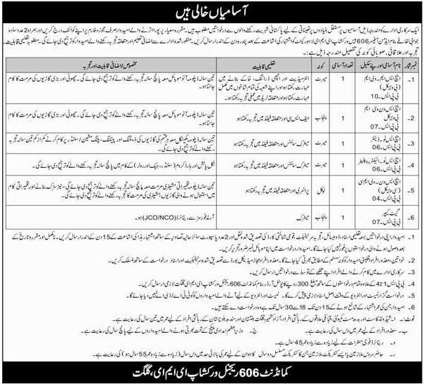 New 606 Regional Workshop EME Gilgit Vacancies 2023