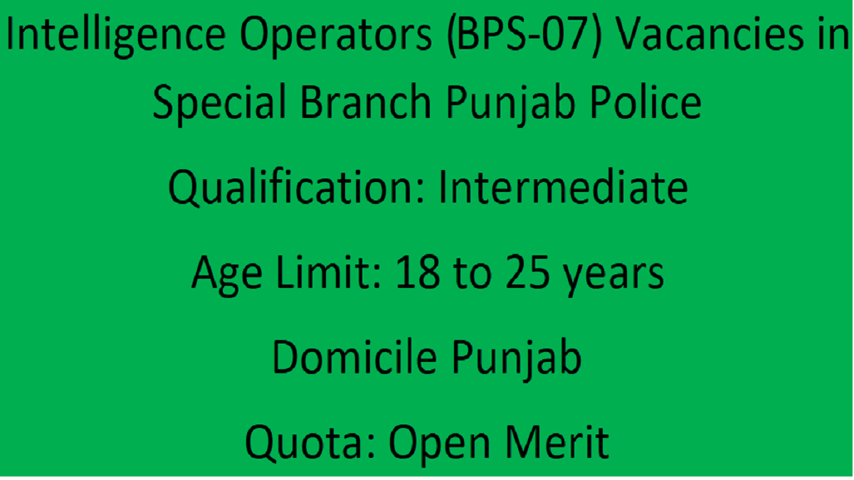 A large number of Punjab Police Intelligence Operators (BPS-07) Vacancies 2023 have been announced. These jobs in the Punjab Police are based on open merit. The details are as under: