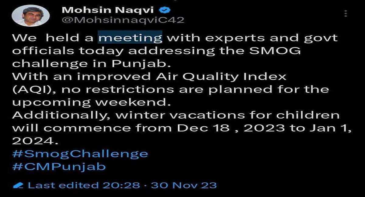 Contents of the Notification of Closing Educational Institutions in Punjab Due to Smog