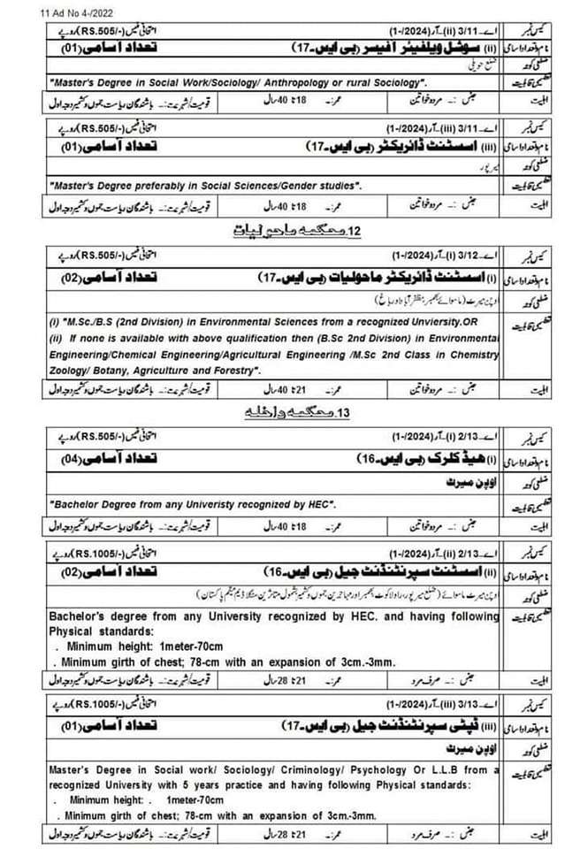 | 2 | Assistant Superintendent Jail | BPS-16 | 02 Vacancies |