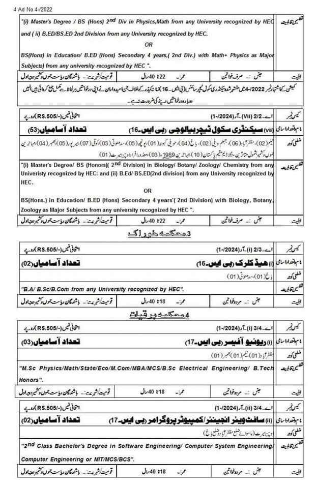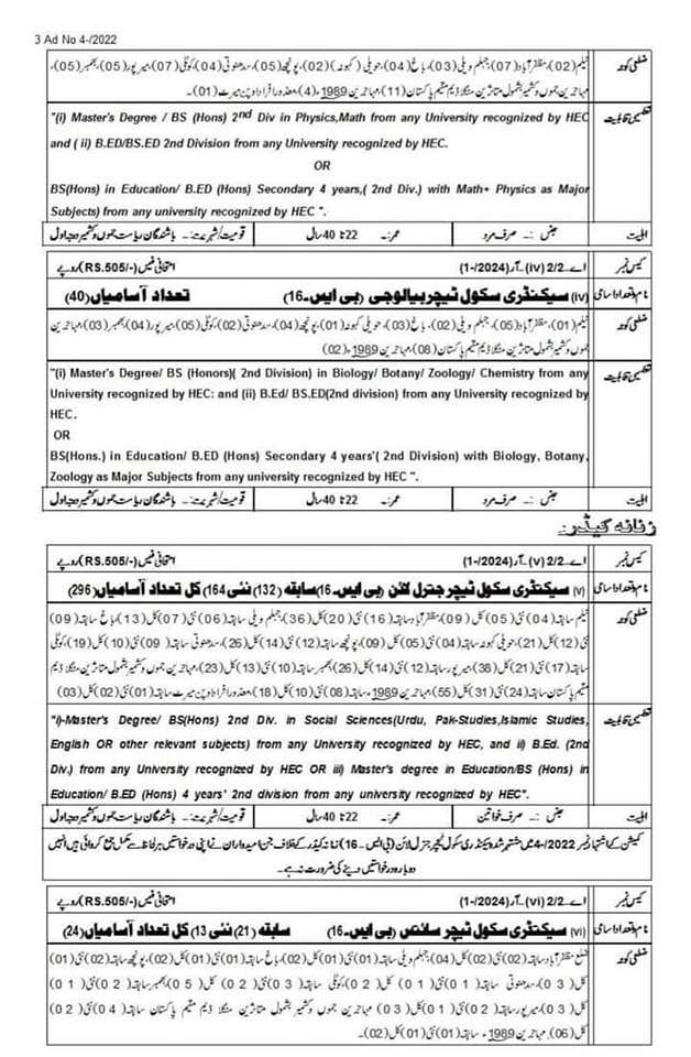 | 4. | Secondary School Teacher Biology | BPS-16 | 40 Vacancies | Male |