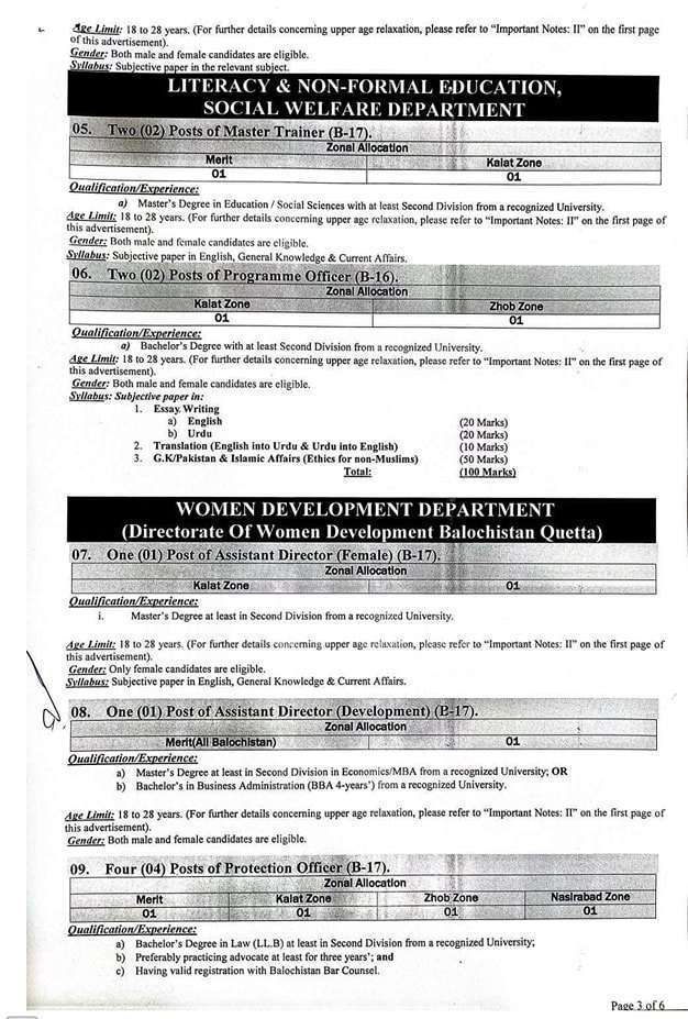 - Three (03) Posts of Qari/Religious Education Teacher (B-17)