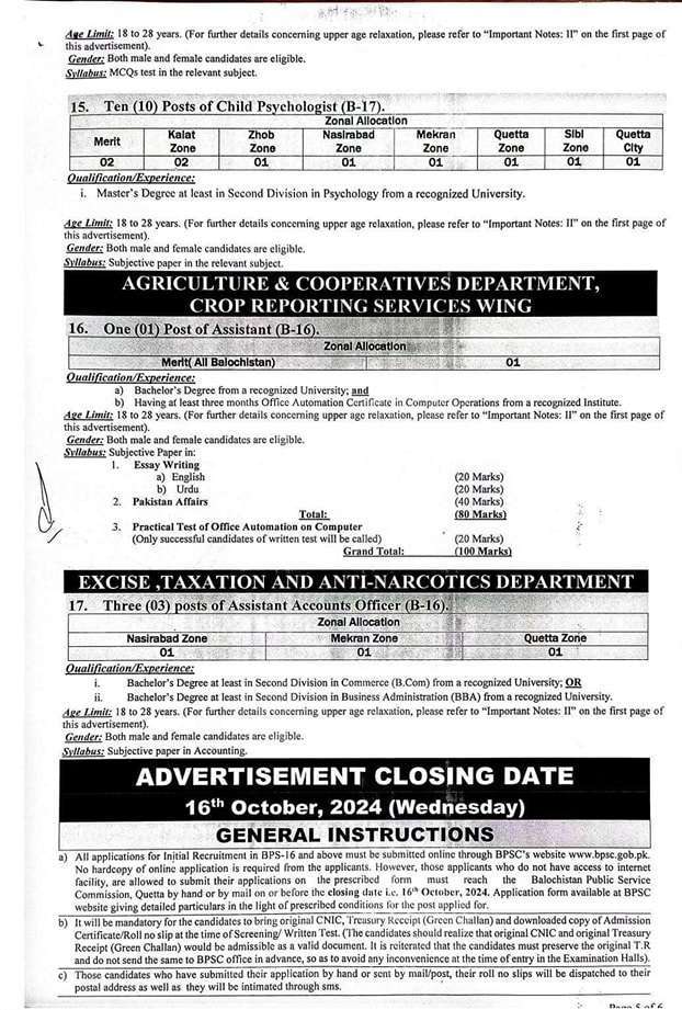 The Balochistan Public Service Commission has issued the BPSC Vacancies September 2024 Ad No. 13. These jobs through BPSC are on a regular and contract basis in various departments of the province. You can read more details below:
