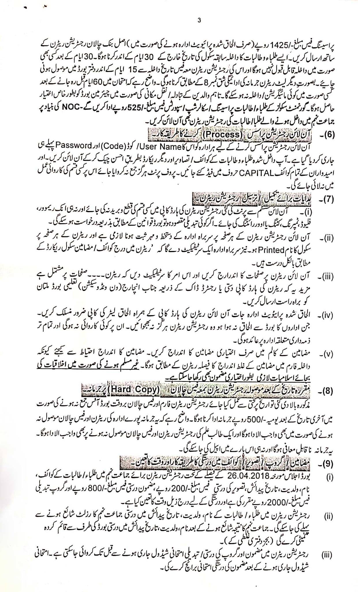 BISE Multan Online Admission Schedule / Registration
