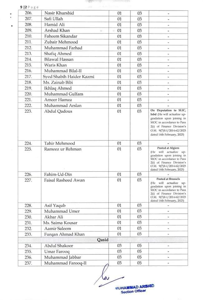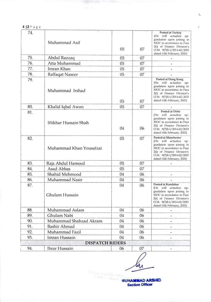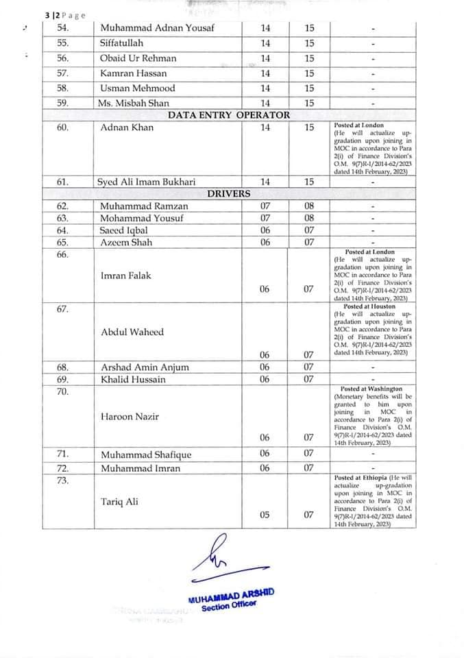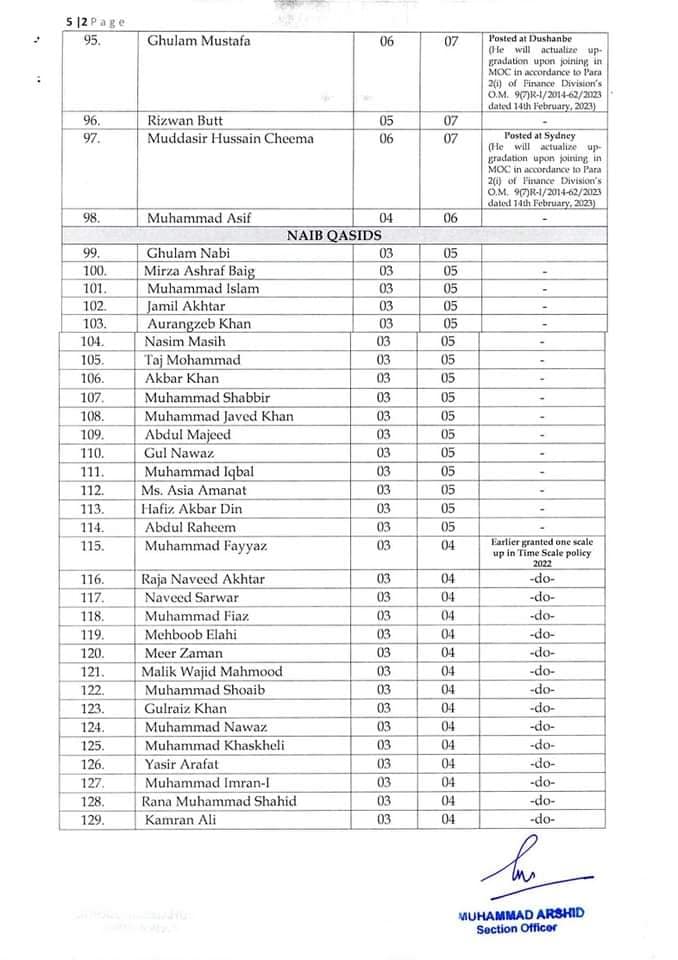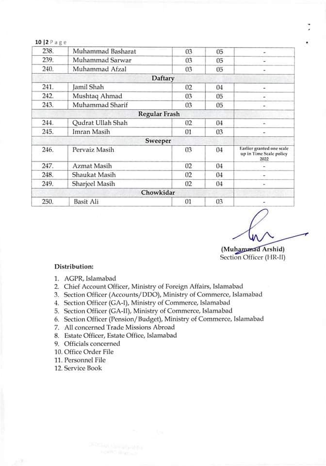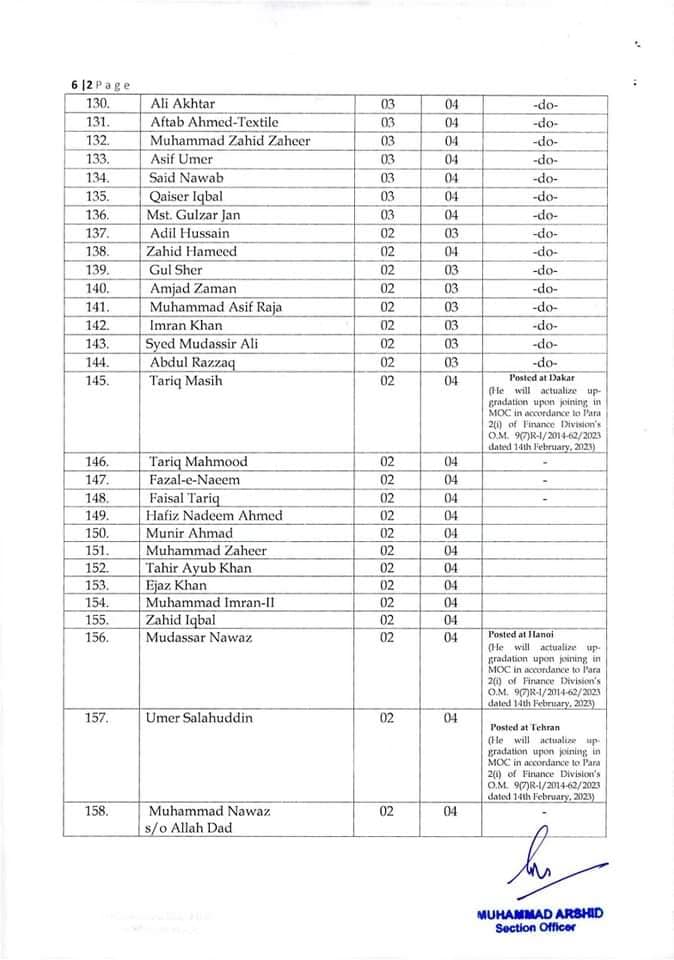 Government of Pakistan, Ministry of Commerce issued a Notification on 01-03-2023 in connection with the By Name Notification Grant Higher Scale / Up-gradation Ministry of Commerce. The details are as under: