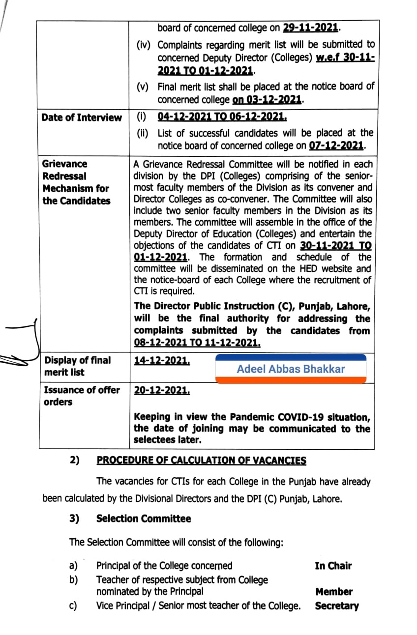 you may also like: List of Colleges with Contact Numbers for CTIs Vacancies