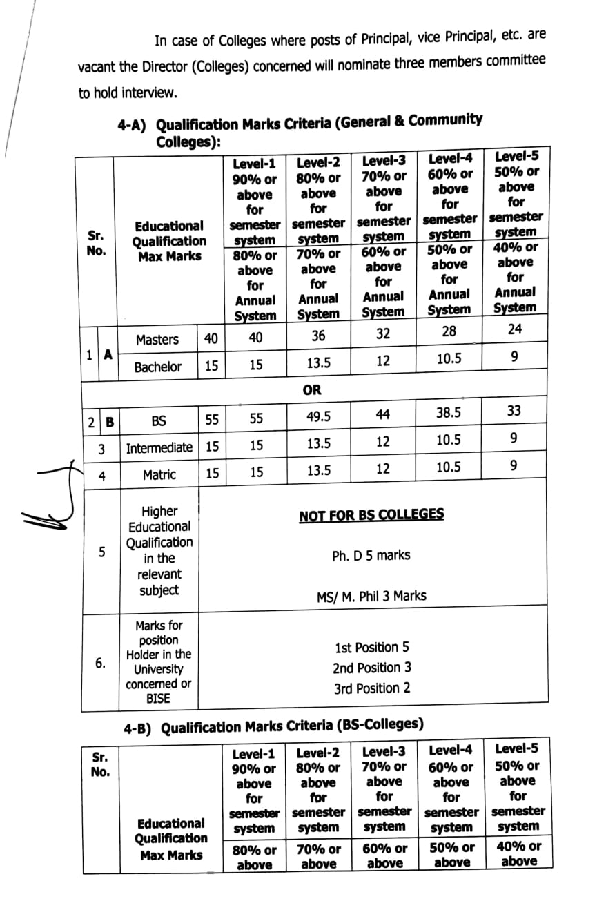 For BS Colleges: MS/M.Phil/Ph.D., (if not available, M.A/M.Sc may be considered)