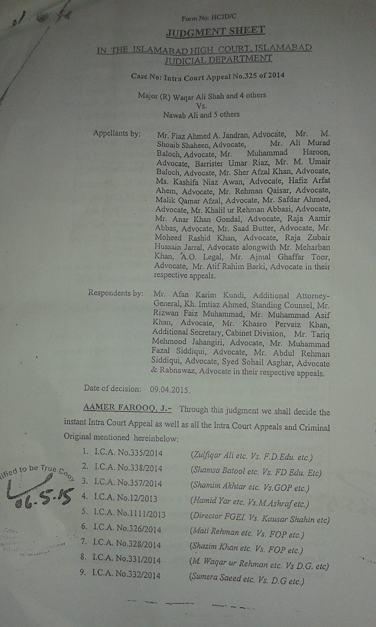 I think IHC have not given clear cut orders regarding regularization of contract / daily wages employees. They have refer the case to Establishment Division which earlier issued / approved minutes of their regularization singed by Nazish Abbsi, Section Officer.