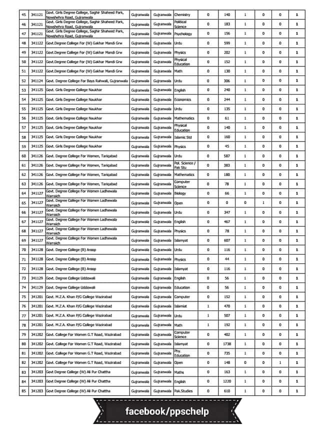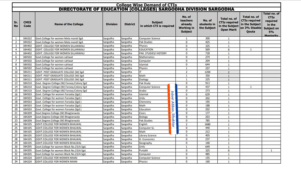 You can also download the Vacancies statement for Sahiwal for male and female colleges.