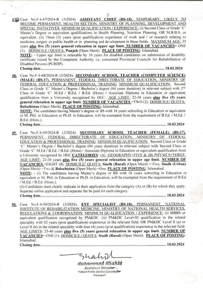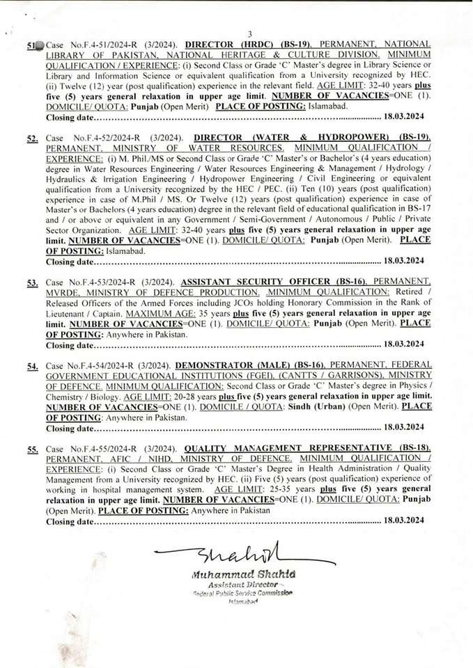 Full Details of Federal Public Service Commission jobs 2024 (Ad 03)