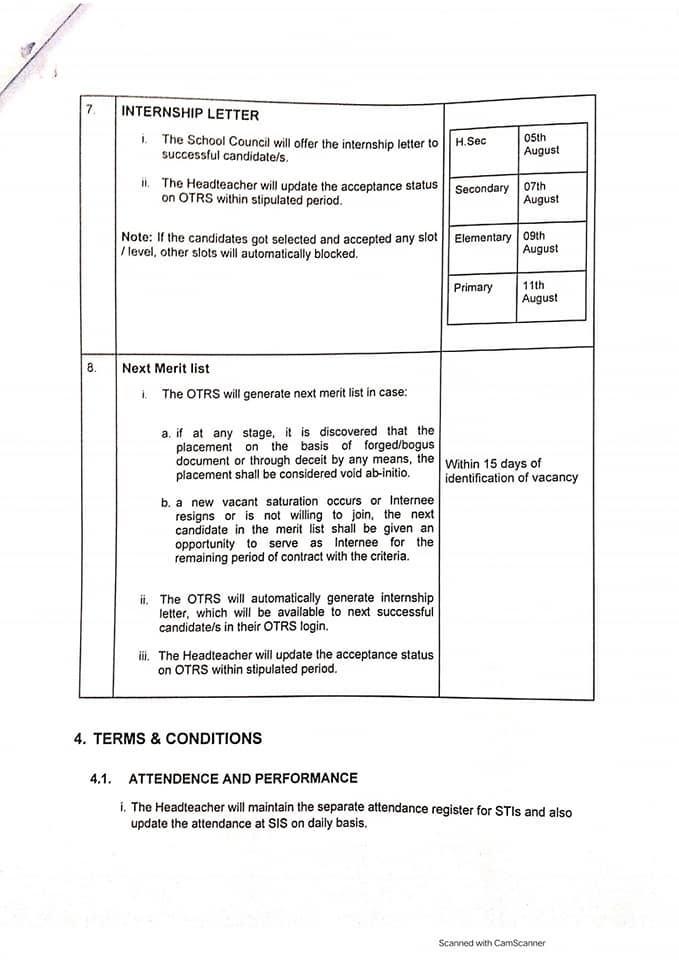 The School Education Department will place an advertisement for the services of School Teaching interns (STIs) phase-wise on government websites, a national newspaper,s, and social media. |