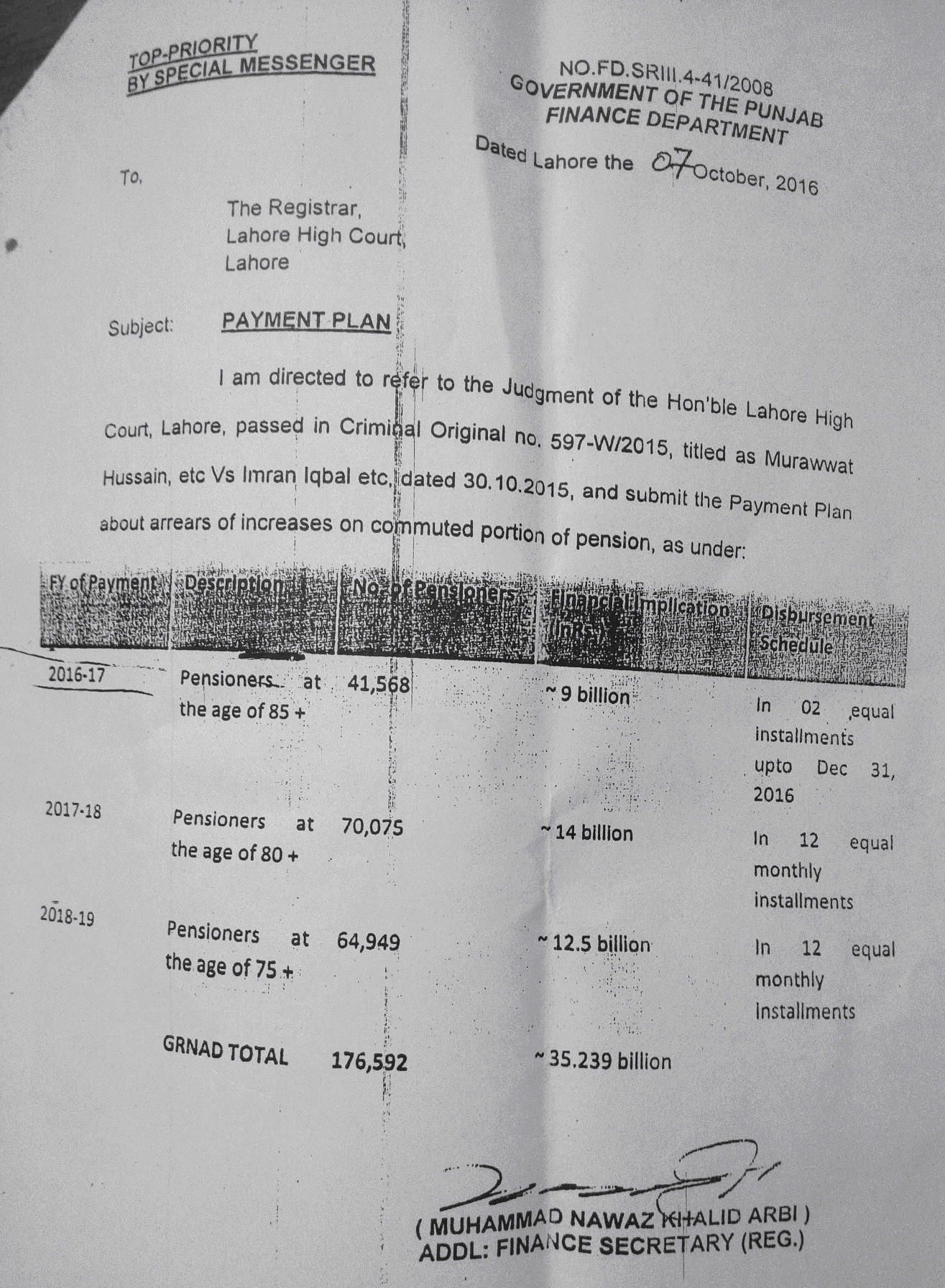 Finance Department sought Lahore High Court approval for payment in 2 phases:
