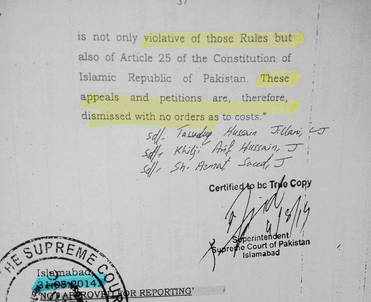 - Orders issued by Lahore High Court, after hearing of case Crl. Org. No. 597-W/2015 on 17 April 2015, included the following directions:-