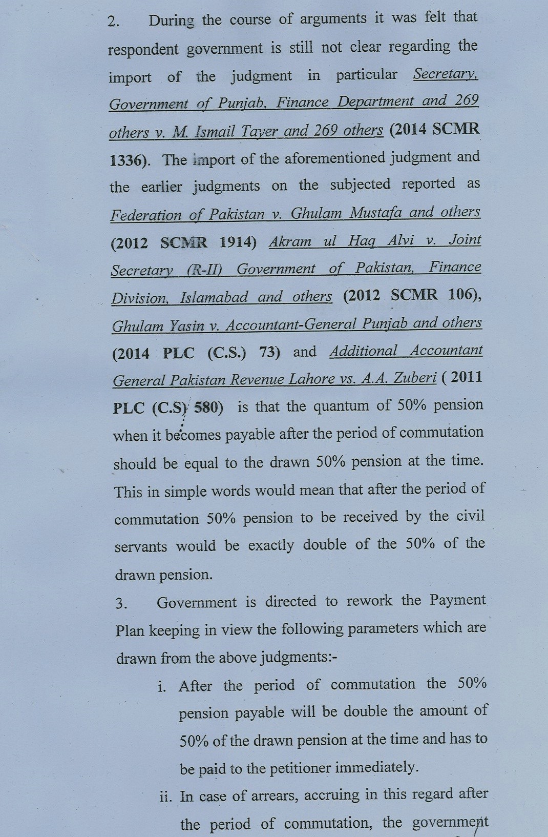 Para 2 (relevant extract). The import of the aforesaid judgment and the earlier judgments…………………..is that the quantum of 50% pension, when it becomes payable after the period of commutation, should be equal to the drawn 50% pension at the time. Government is directed to rework the Payment Plant keeping view …………