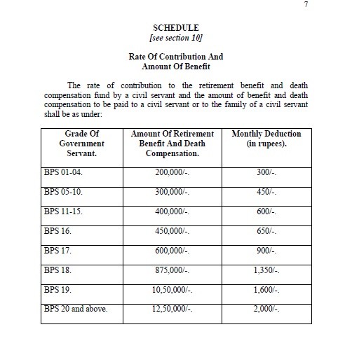 This KPK Civil Servants Retirement Benefits and Death Compensation Act will be effective with immediate affect and it is for all the provincial Government employees of the province of KPK. Some features of this act are as under: