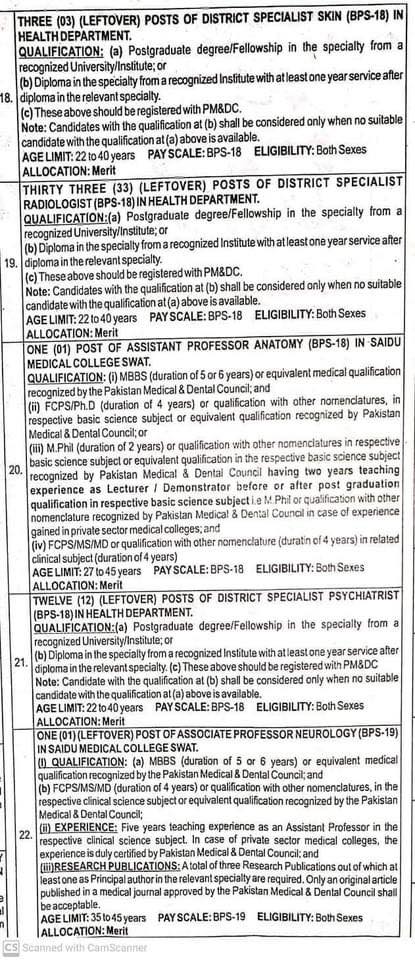 | 19 | District Specialist Radiologist | BPS-18 | 33 |