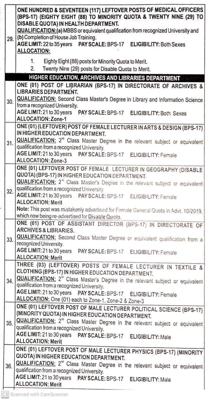 | 37 | Female Lecturer in Physics | BPS-17 | 01 Vacancies |