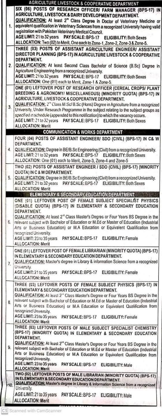 | 6 | Female Subject Specialist Physics | BPS-17 | 01 |