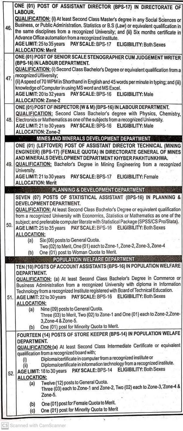 | 50 | Statistical Assistant | BPS-16 | 07 |