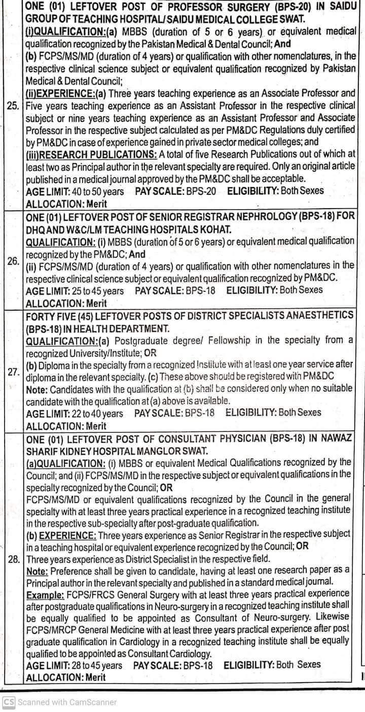 | 28 | Consultant Physician | BPS-18 | 01 |