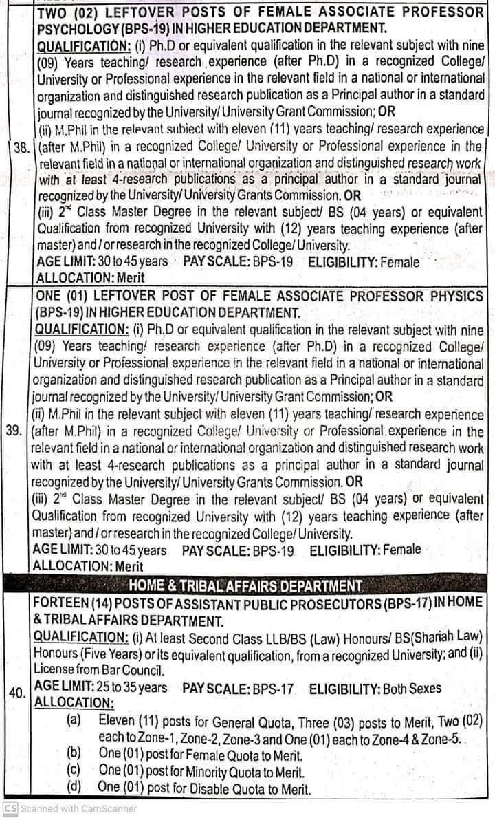 | 38 | Female Associate Professor Psychology | BPS-19 | 02 |