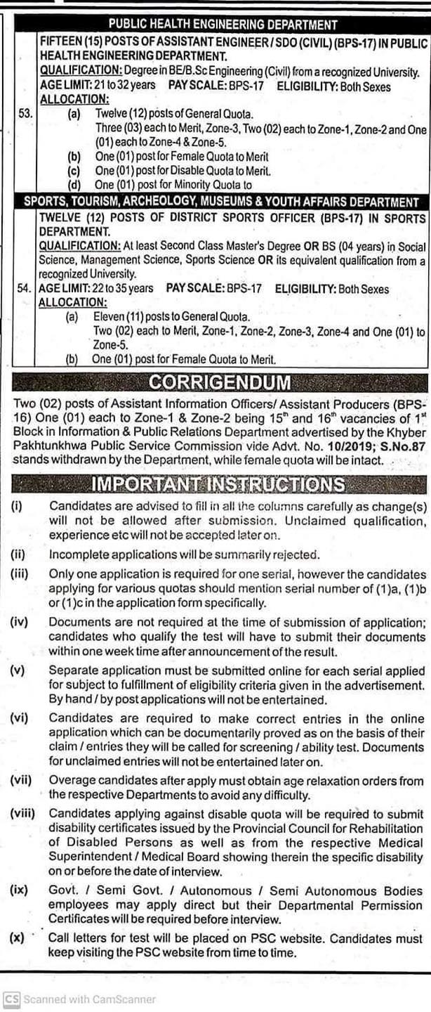 | 54 | District Sports Officer | BPS-17 | 12 |