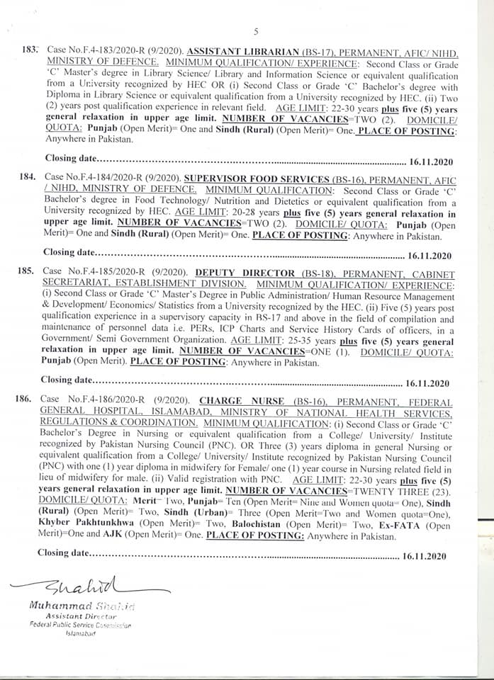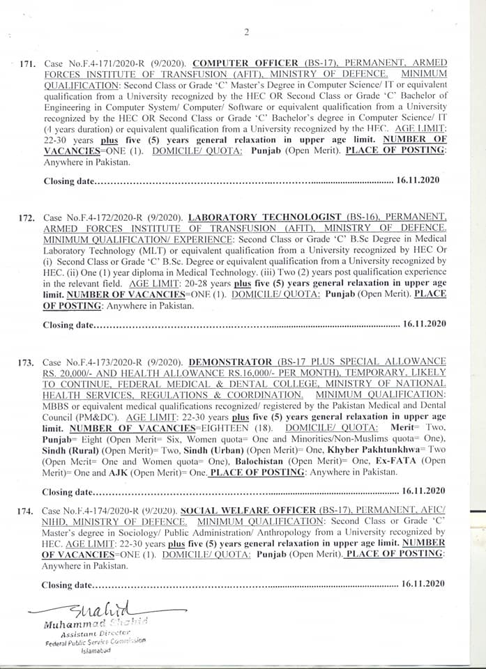 FPSC announced these jobs in different departments of Federal Government. Most of the jobs are in AFIF/NIHD. The details are as under: