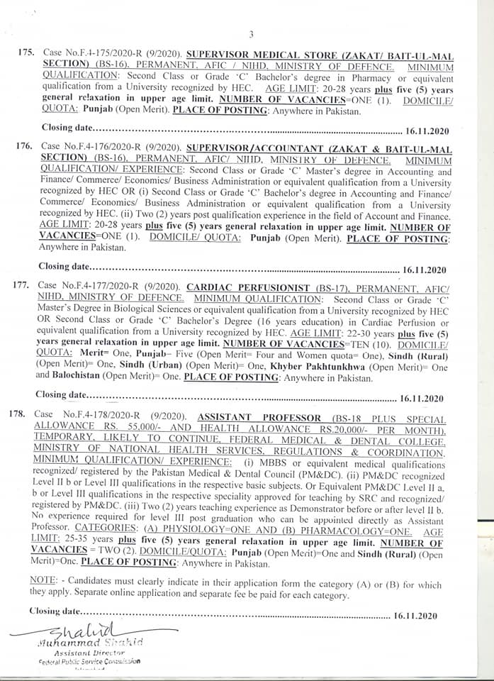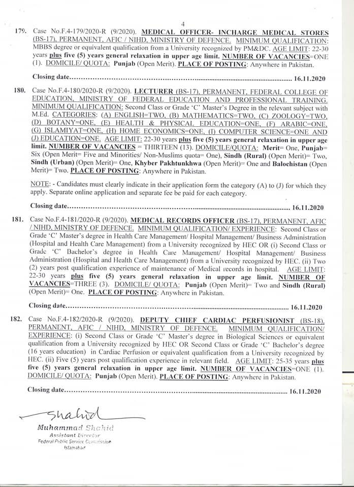 Federal Public Service Commission has announced for the Latest FPSC Jobs Advertisement No. 09 of November 2020. The closing date for these FPSC vacancies is 16th November 2020. As you will see below that most of the vacancies are Medical related or Health Department of the Armed Forces. The candidates must follow the general instructions before they apply for these jobs through the Federal Public Service Commission (FPSC).