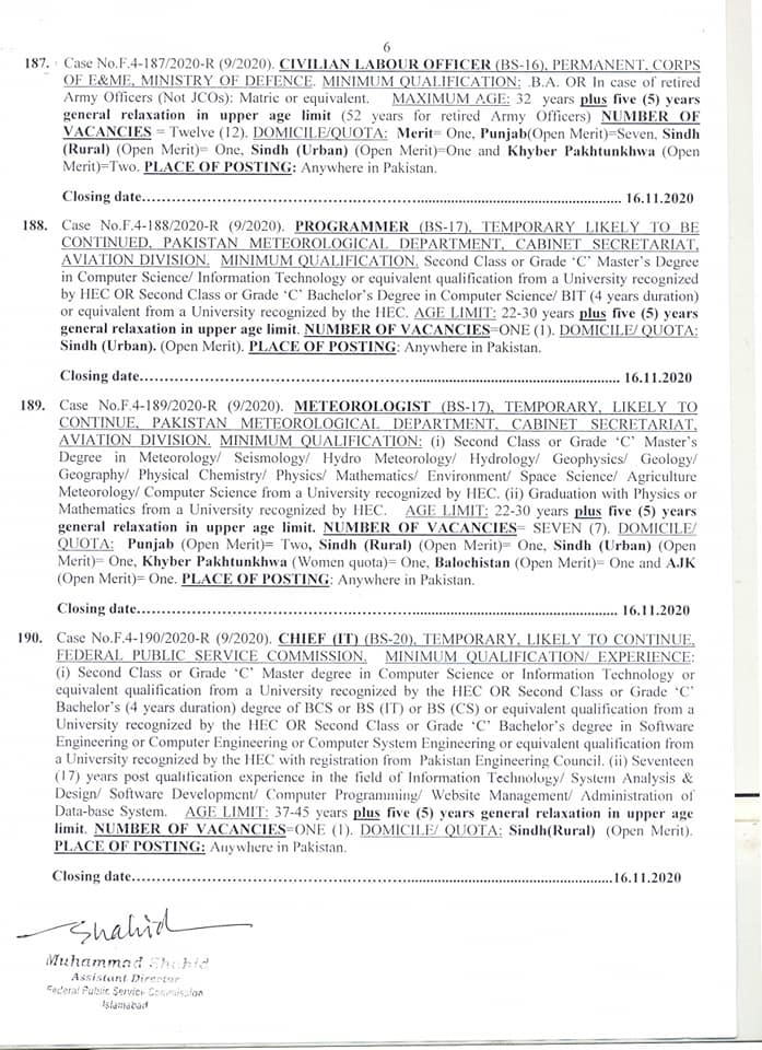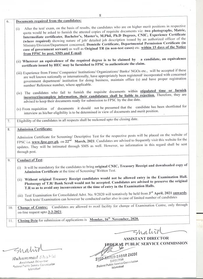 Latest FPSC Jobs Advertisement No. 09 November 2020