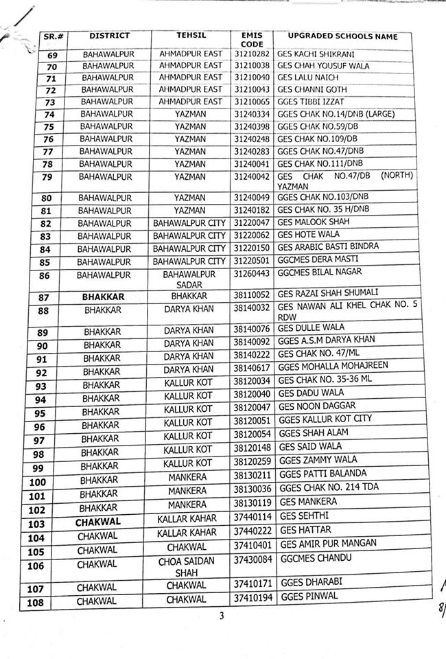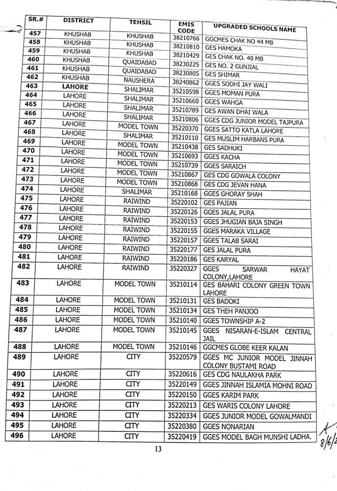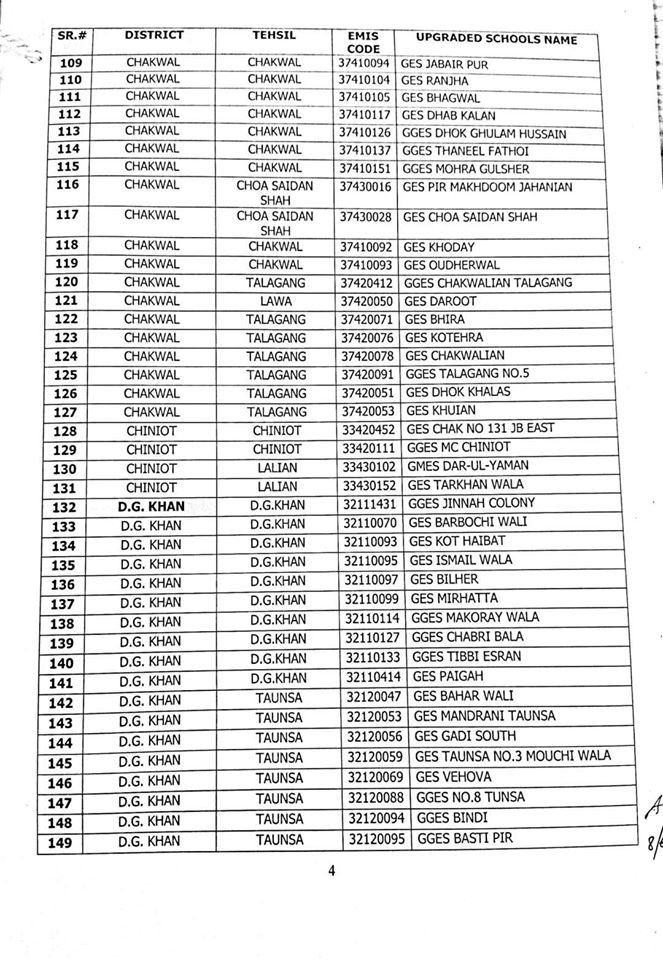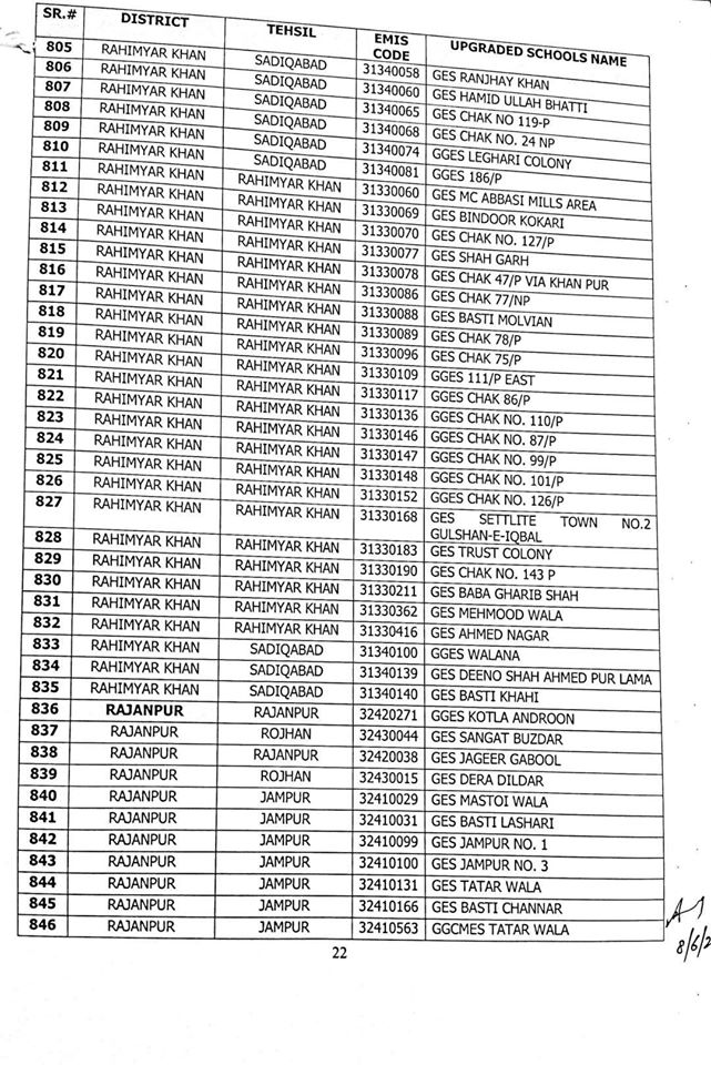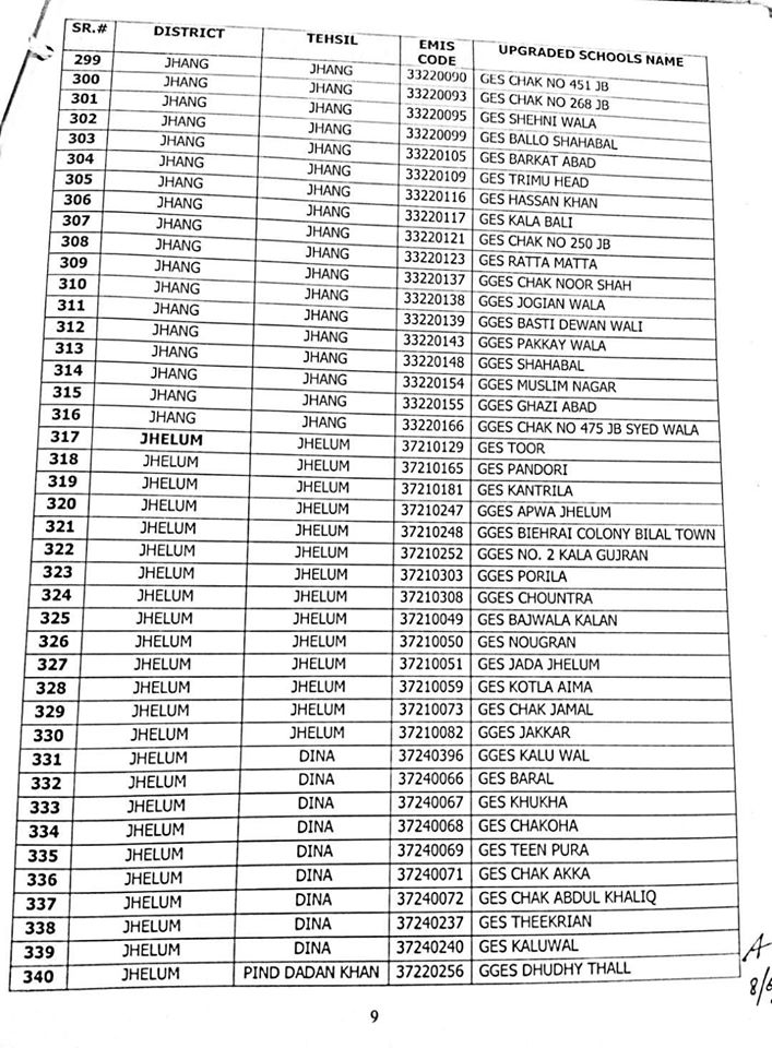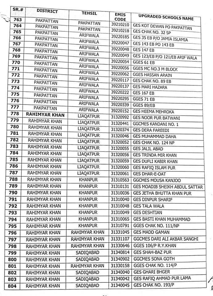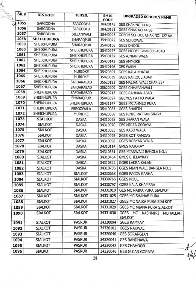 Out of these 1227 schools, 606 are Girls schools and 621 are Boys schools. A complete list of upgraded schools is attached herewith.