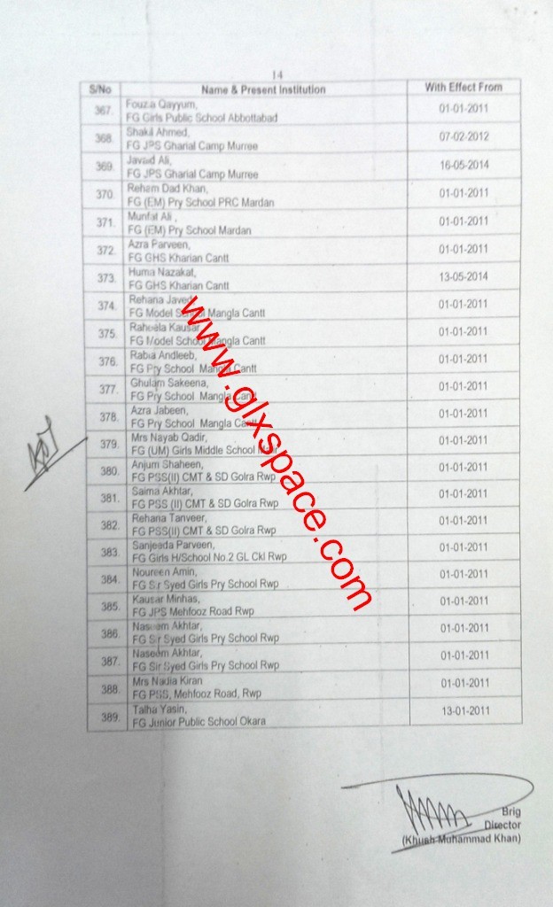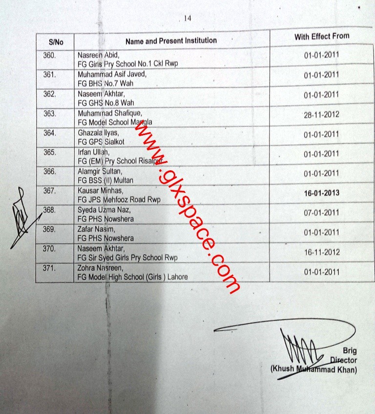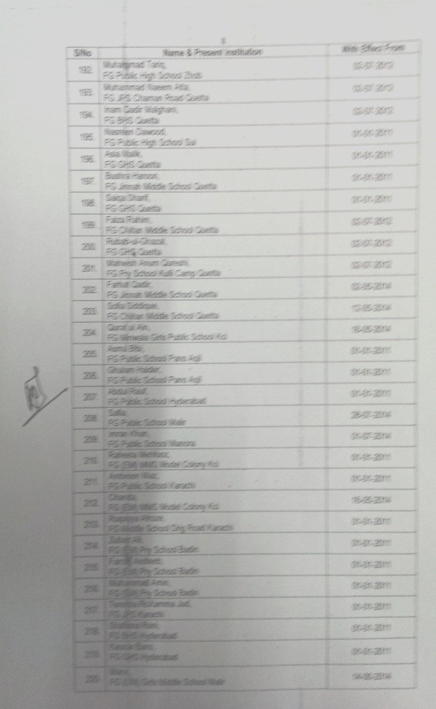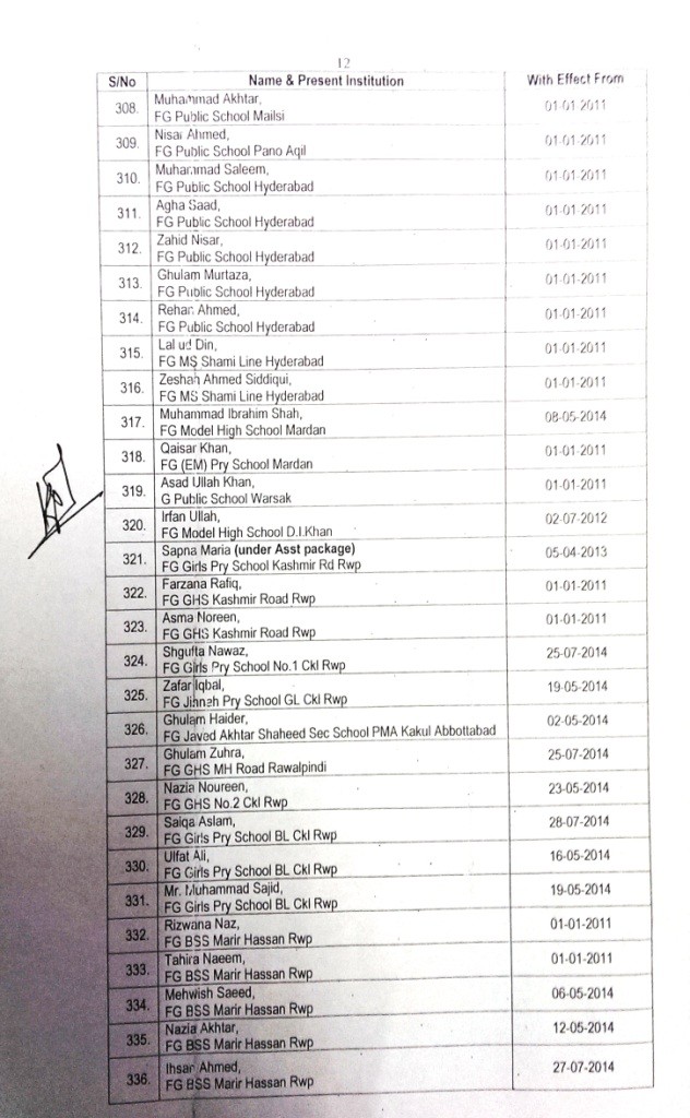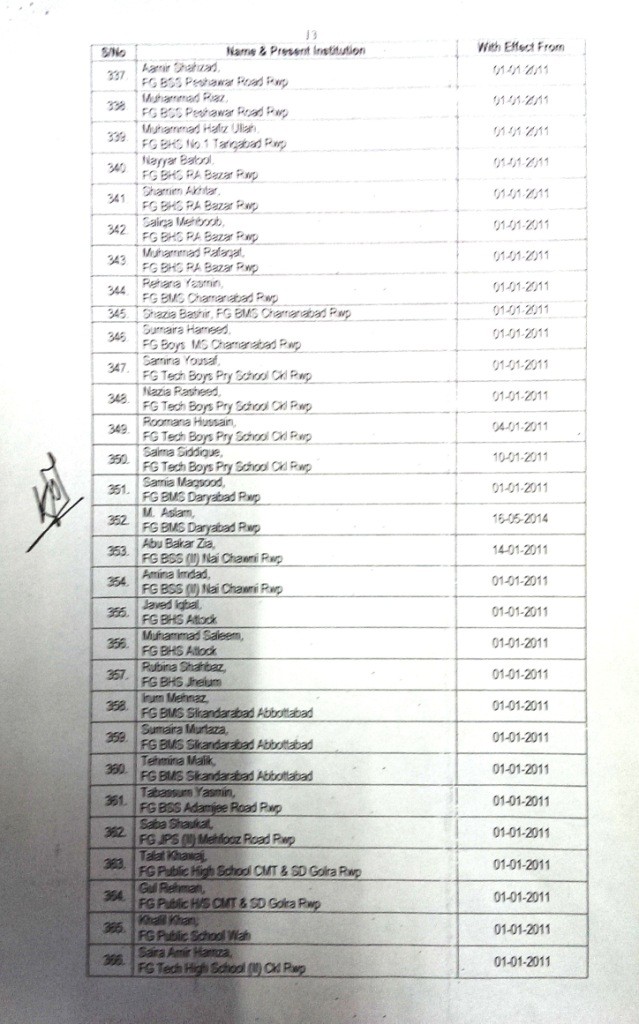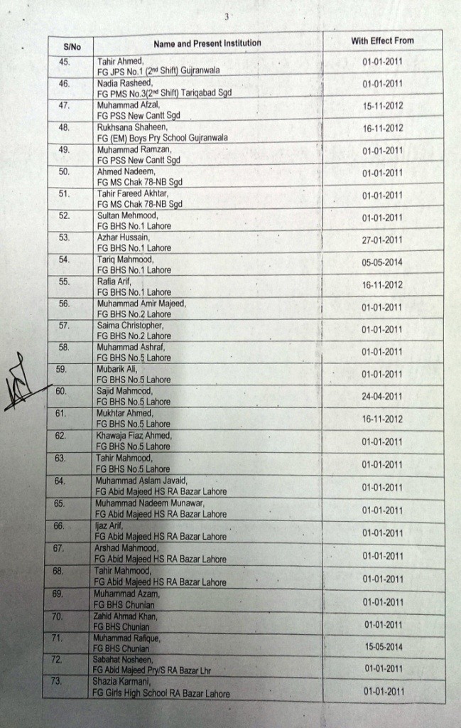 Accordingly, Trained Under Graduate Teachers (TUGT) BPS-14 have been upgraded to BPS-16 as Trained Graduate Teachers wef the dates mentioned against each in the list. In this list 371 TUGTs have been upgdared to BPS-16.