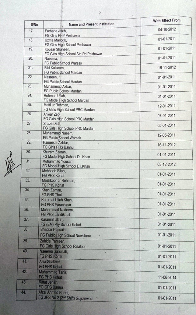 Special Thanks to Mr. A. Ahmad for sending the List of Leftover Cases of Upgradation of MTTs/TUGTs of FGEI.