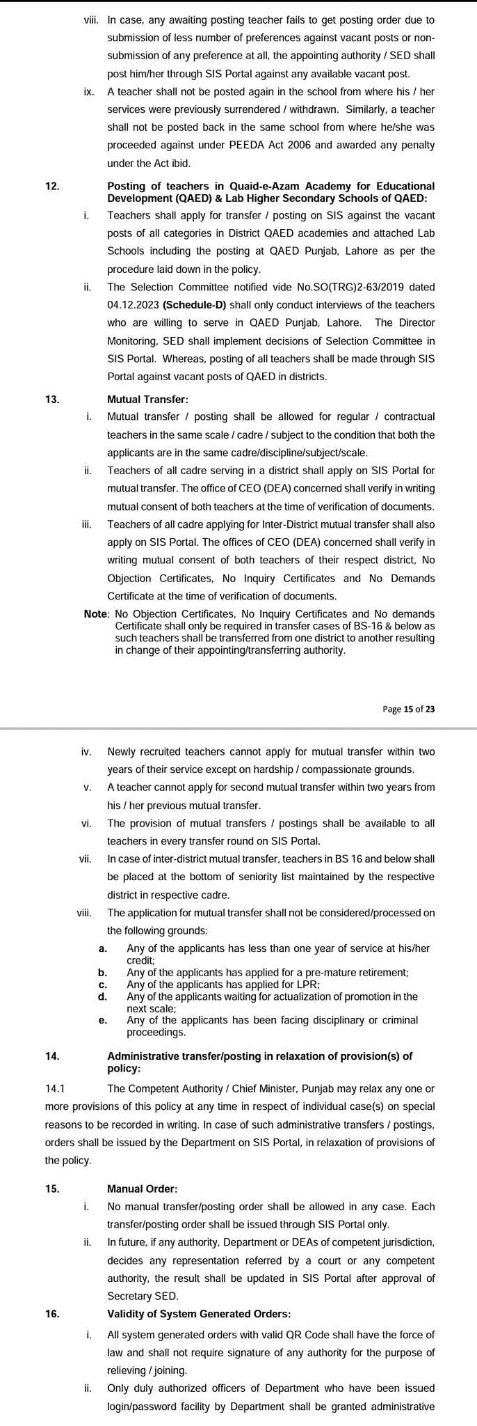 Government of the Punjab, School Education Department issued a Notification in connection with E-Transfer Policy 2024 SED Punjab. This e-transfer policy by the School Education Department is effective with immediate effect. The details are as follows:
