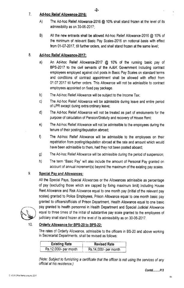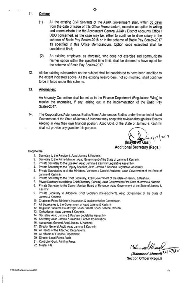 The President Azad Jammu & Kashmir has been pleased to sanction the revision of Basic Pay Scales & Allowances with effect from 11 July, 2017 for the Civil Servants of Azad Government of the State of Jammu & Kashmir, as detailed in the following paragraphs:-