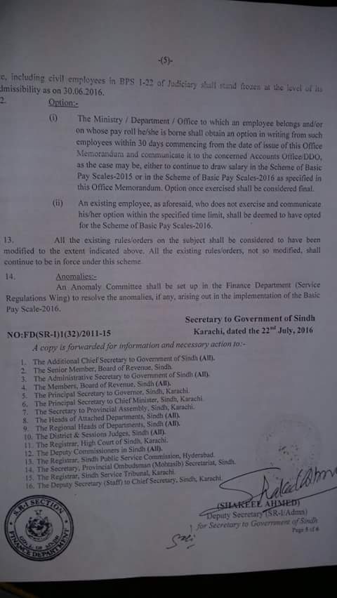 Government of the Sindh, Finance Department has issued Notification NO. FD(SR-I)I(32)2011-2015 dated 22-07-2015 in connection with Notification of Revised Pay Scales 2016 Sindh.