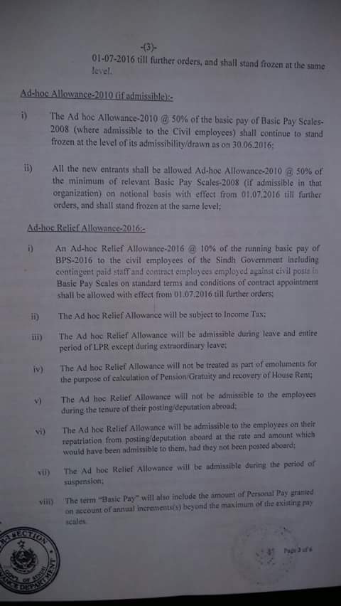 10% out of 15% of the Adhoc Relief Allowance 2013 and 7.5% out of 10% of the Adhoc Relief Allowance 2015 have been merged into basic pay. In the same way 10% 2014 have also been added into basic pay. Other details can be read on the copy of the Notification. Special thanks to the following employees: