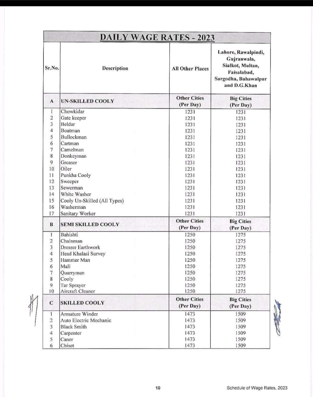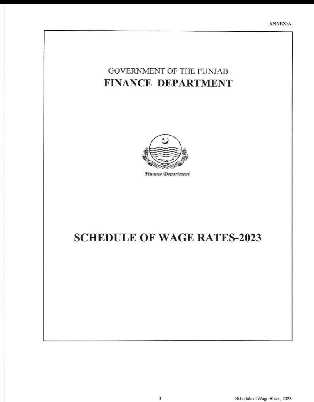 Government of Punjab finance department on the order of the government of Punjab approves the schedule of wage rate 2023 with effect from the first of July 2023. the complete schedule of wage rate 2022 Stand Sir superseded accordingly. Apartment of work charred employees shall be made in accordance with the procedure in their preface of the schedule of wage rate 2023. The ICT has already issued the Notification of monthly and daily wage rates 2023 for the workers. The schedule of wage rate 2023 is approved for the following employees’ cadres: