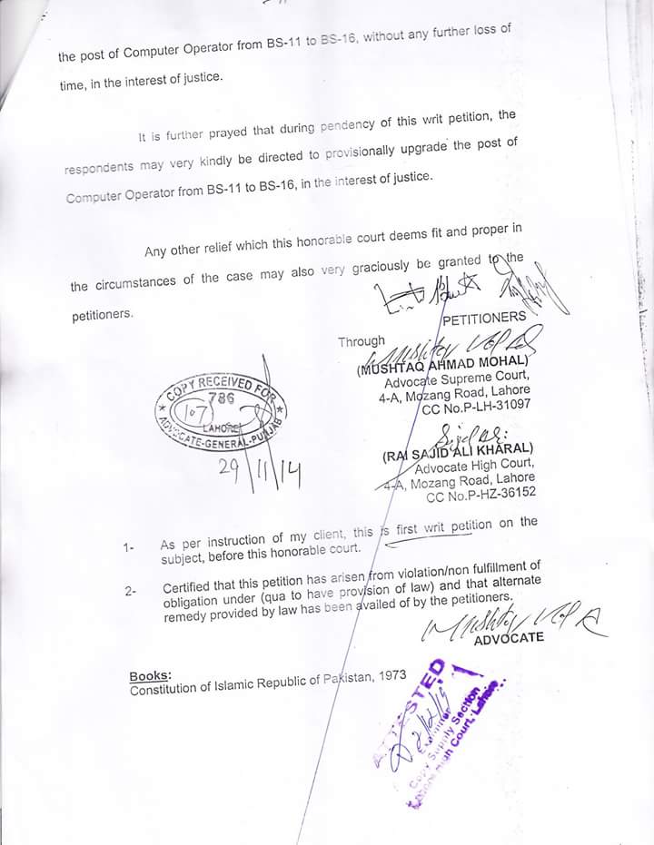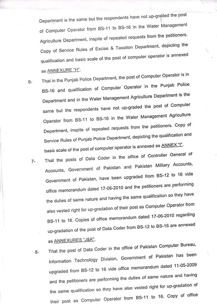 Computer Operator BS-11, in Punjab may also be up-graded, if any one have any Court order or Notification for up-gradation of Computer Operator BS-11 may please be sent me at [email protected]