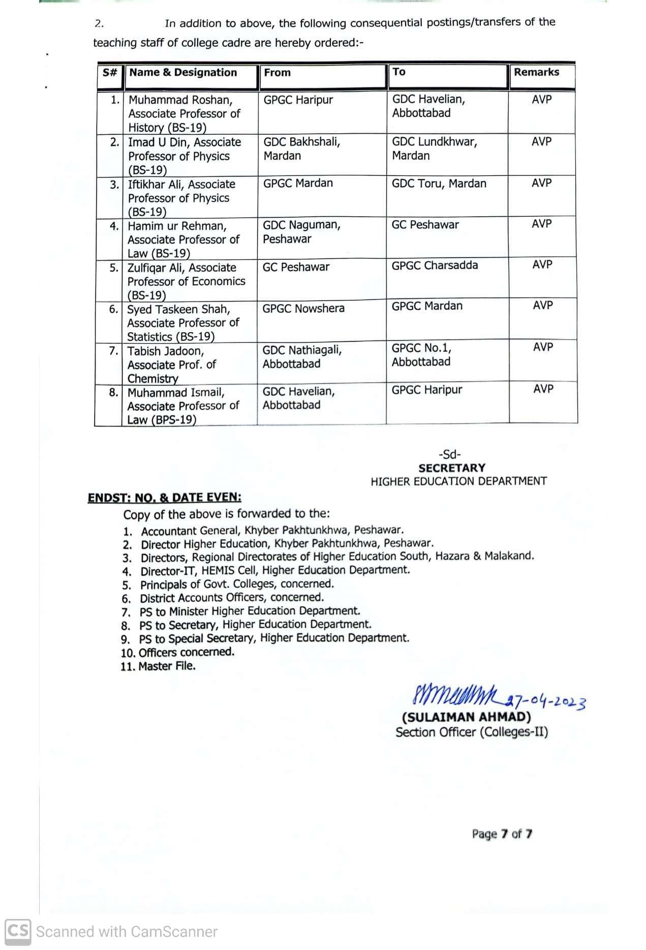 KPK government issues orders about the Posting Adjustment of Associate Professors BS-19 KPK after promotion. Higher Education, Archives and Libraries, KPK issues notification dated 27-04-2023 regarding posting/Adjustment of the Associate Professors. Here are the details: