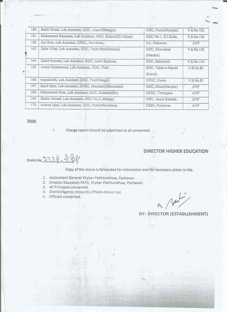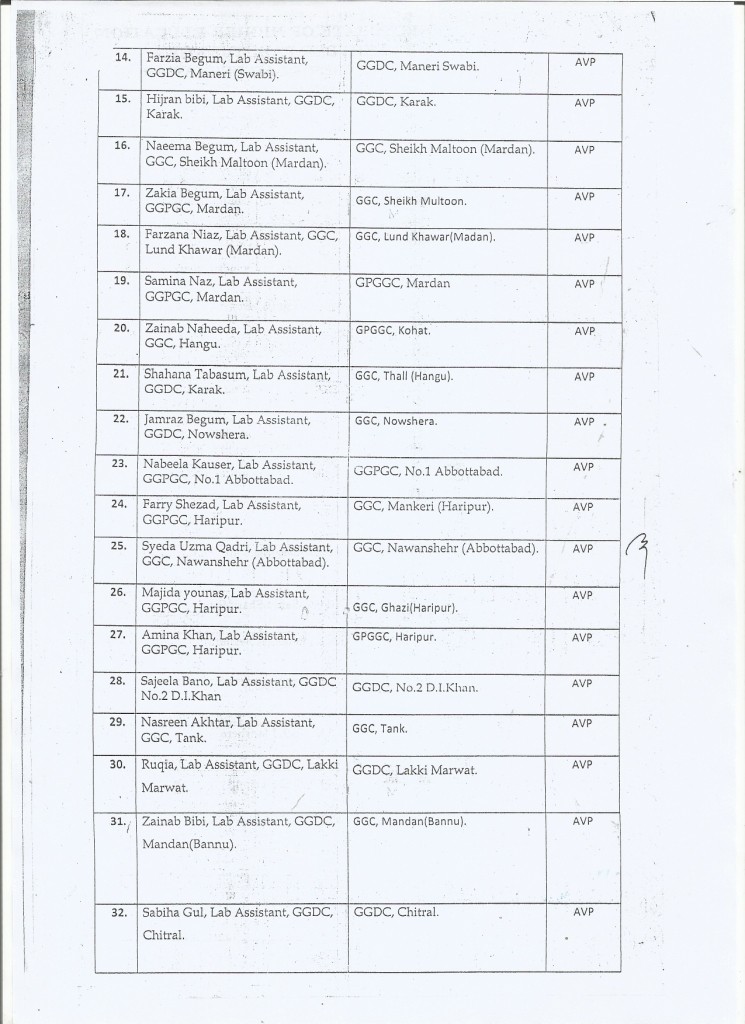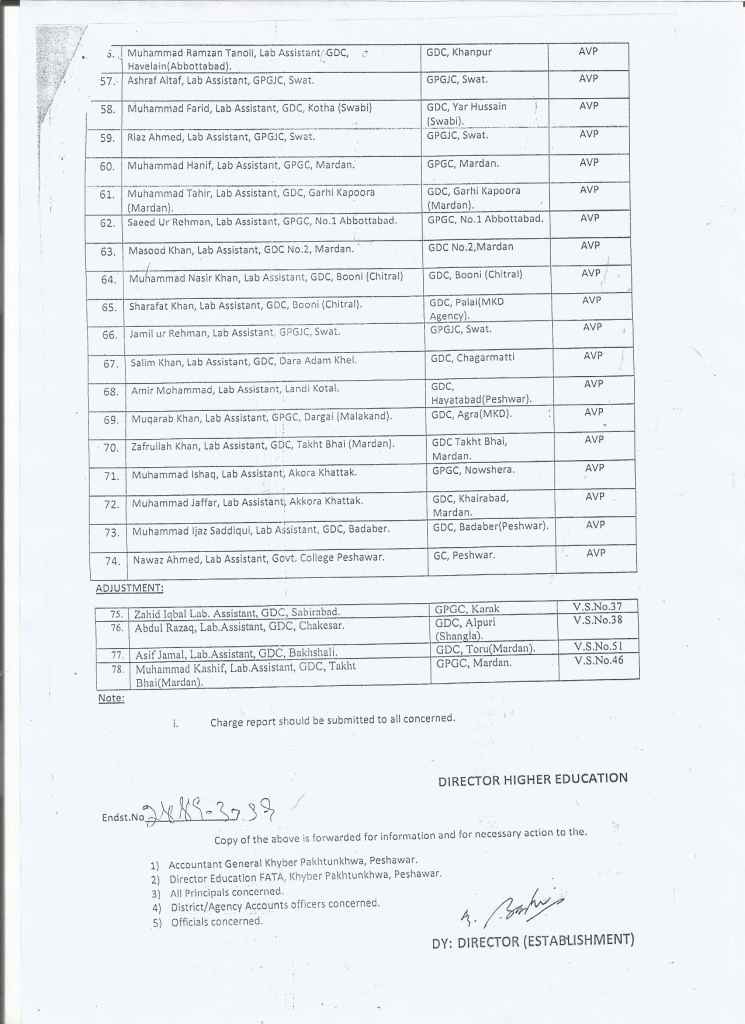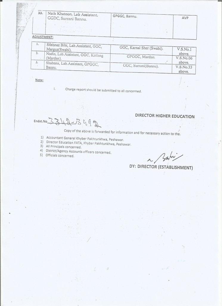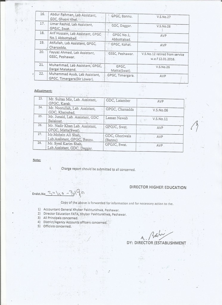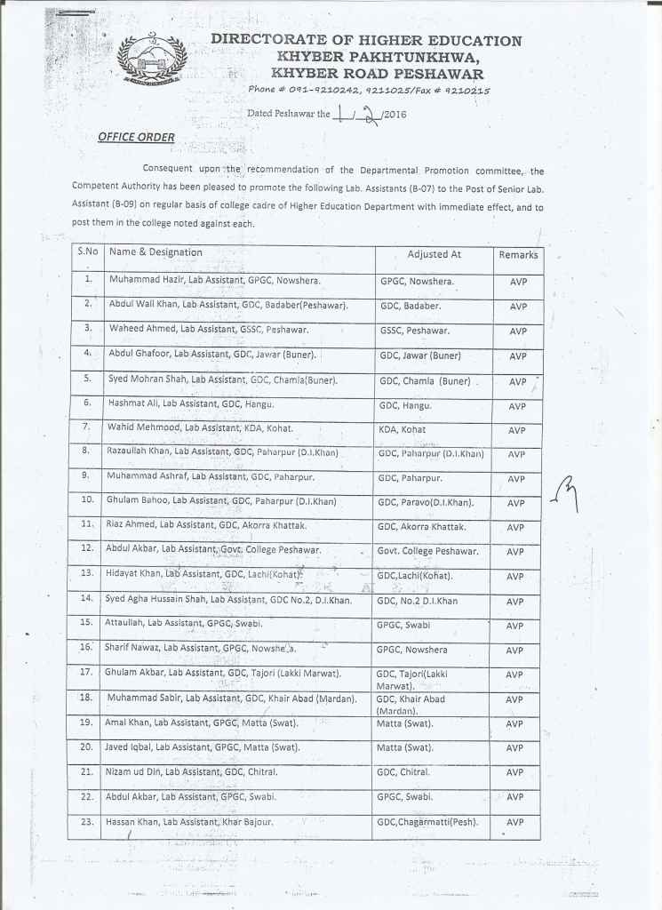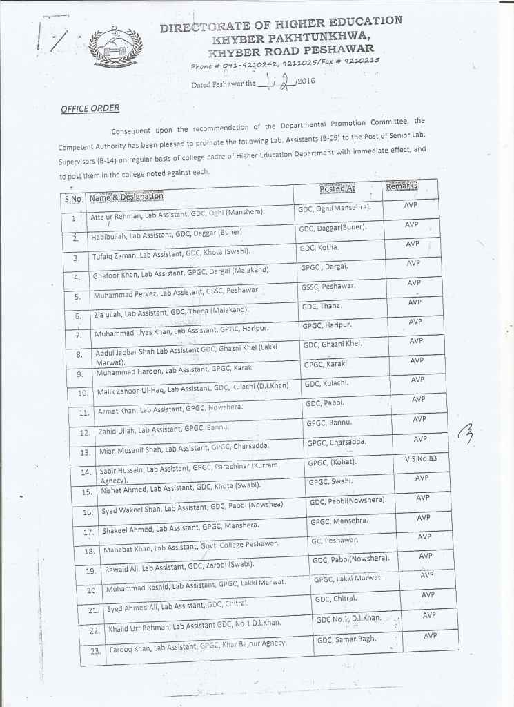Special Thanks to Mr. Murid Abbas for sending the copy of the orders of Promotion of Lab Assistants KPK Higher Education Department.