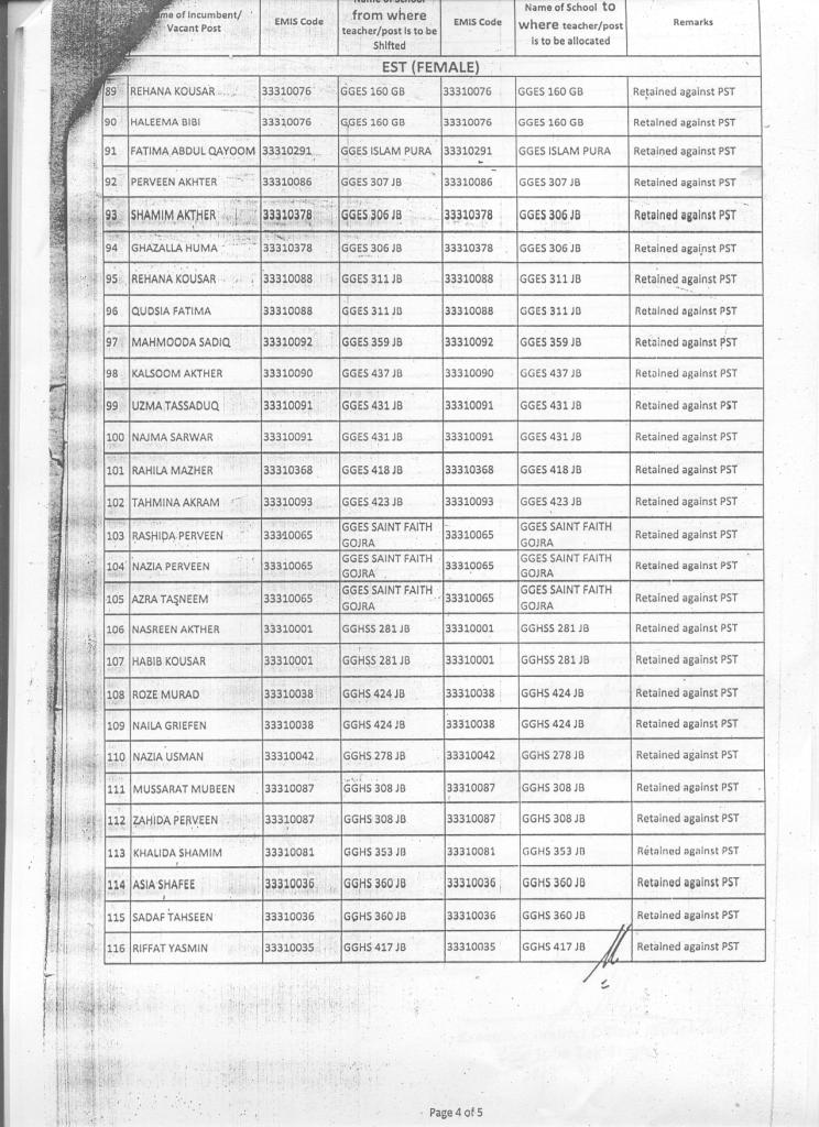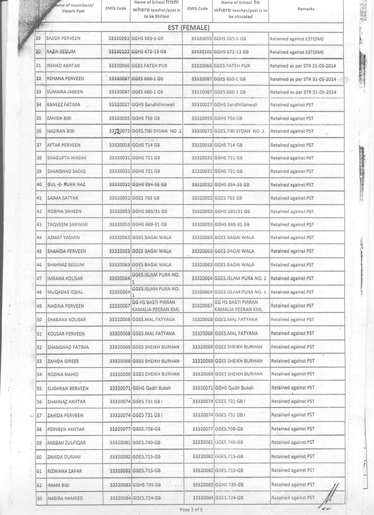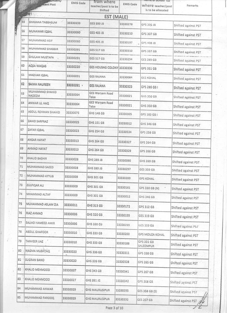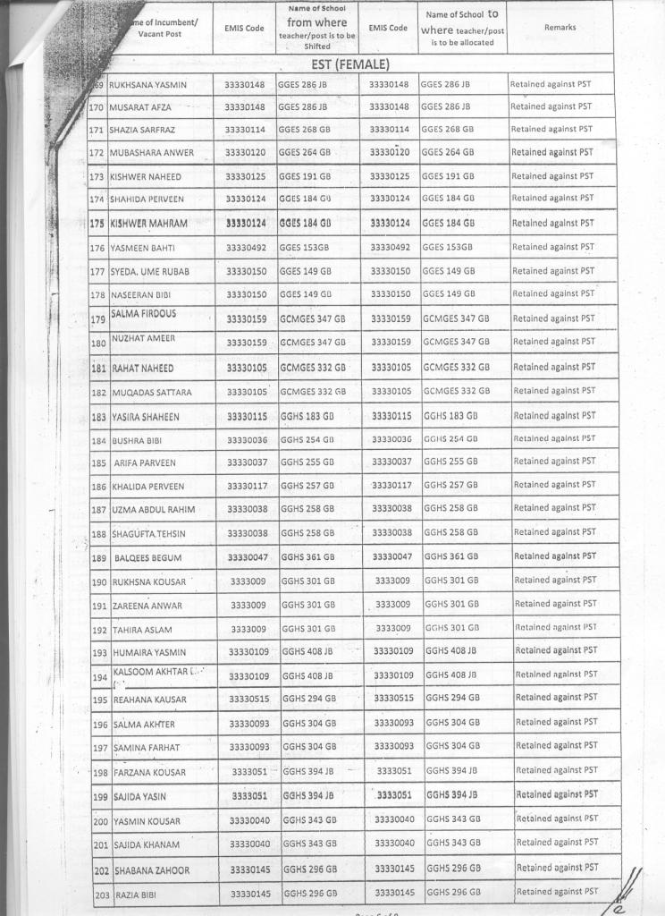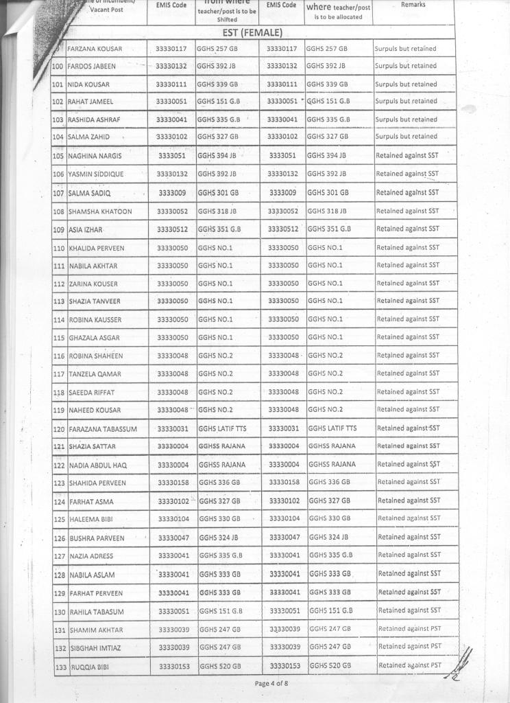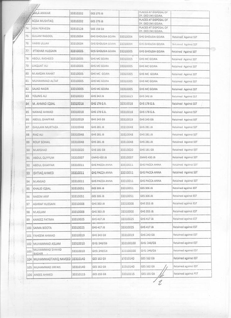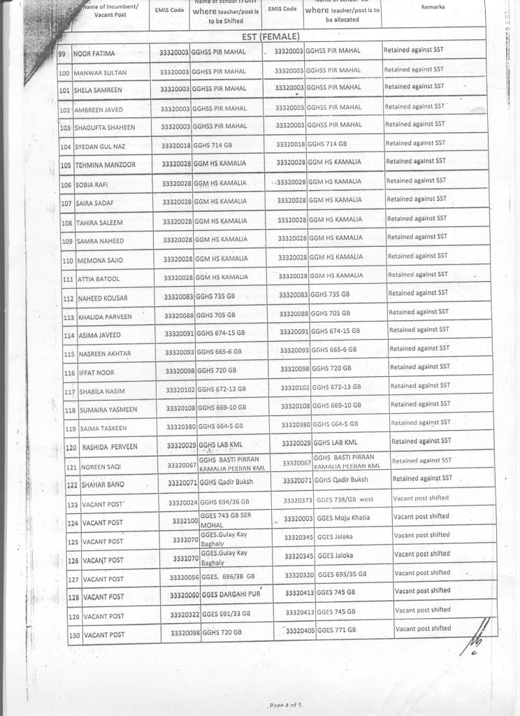 In Tehsil Gojra re-allocation of the following teaching staff has been made.