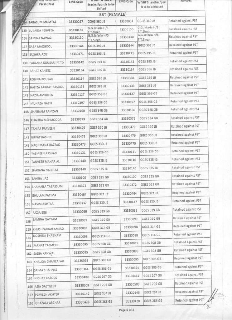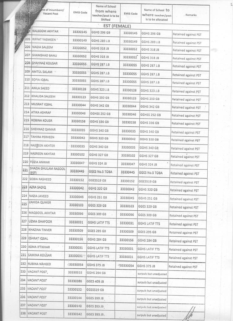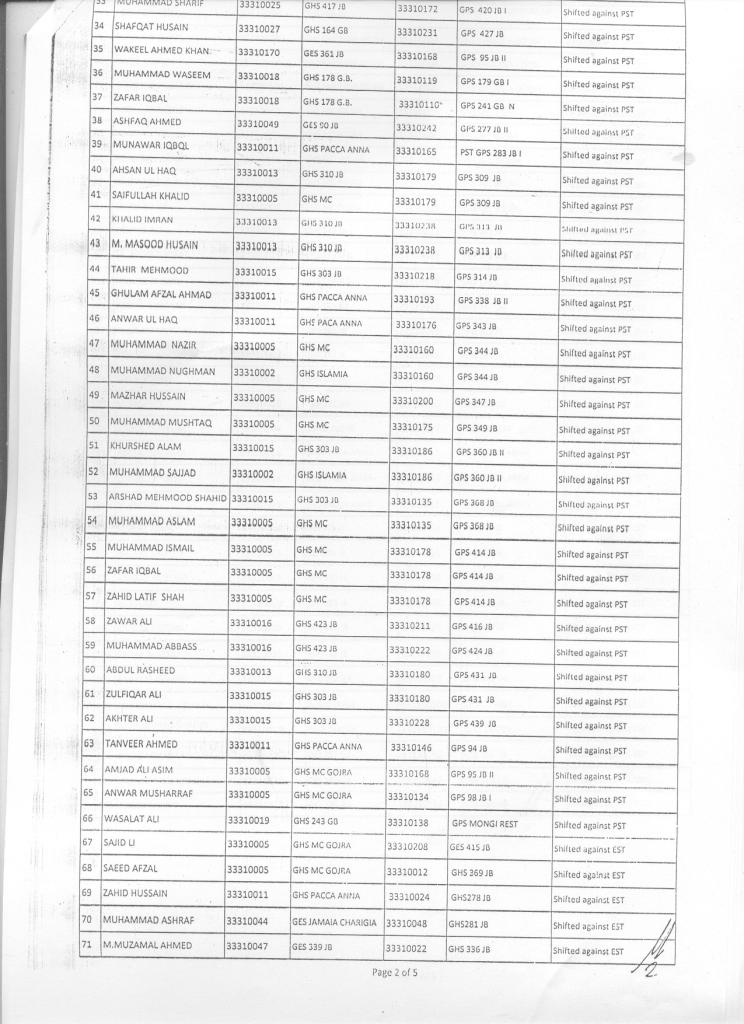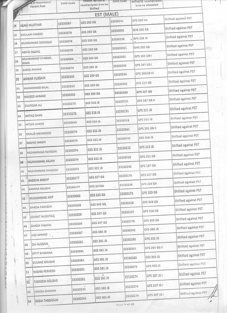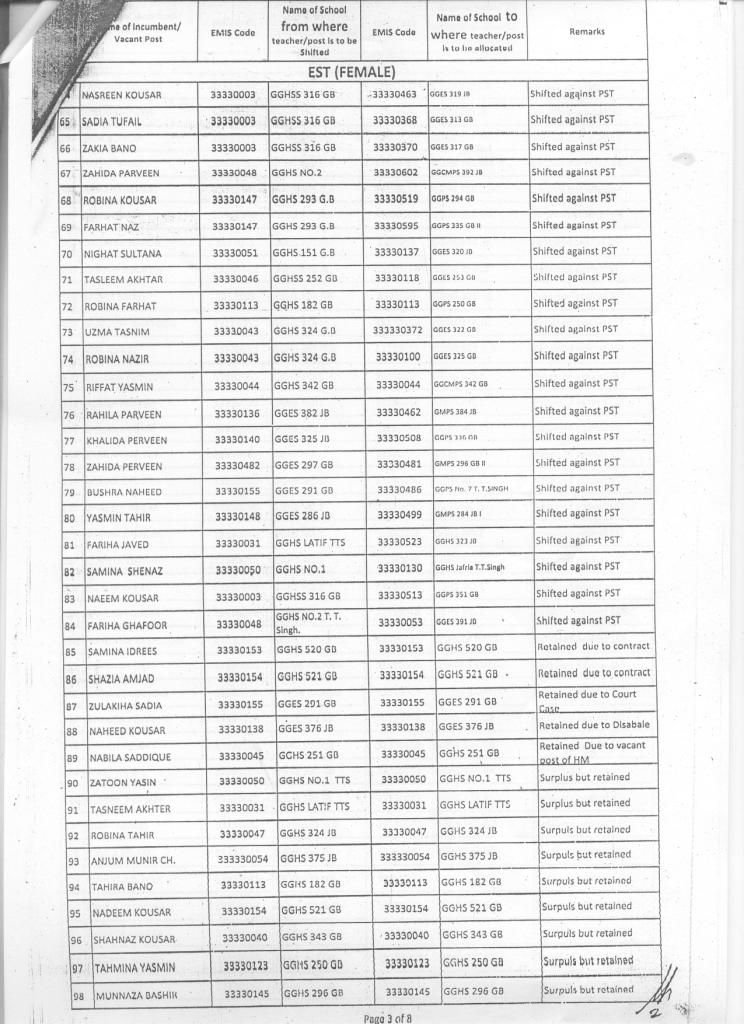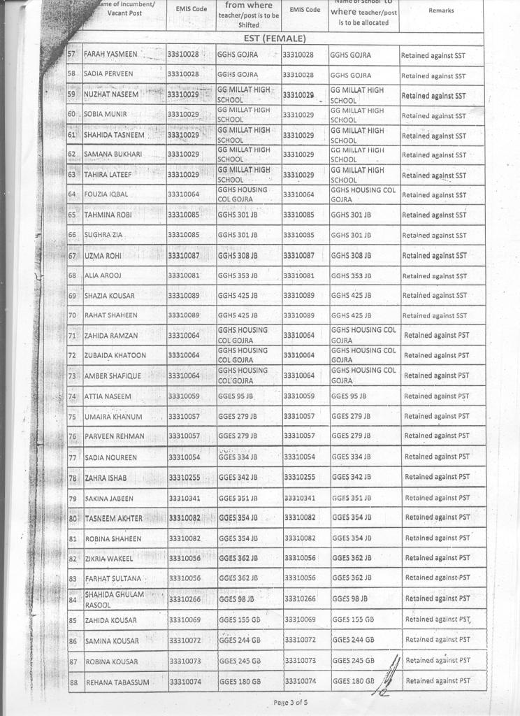In Tehsil Gojra re-allocation of the following teaching staff has been made.