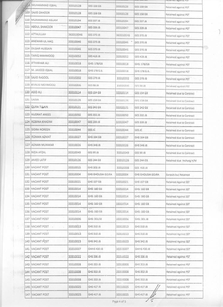 Re-Allocation of Teaching Posts in Tehsil Gojra