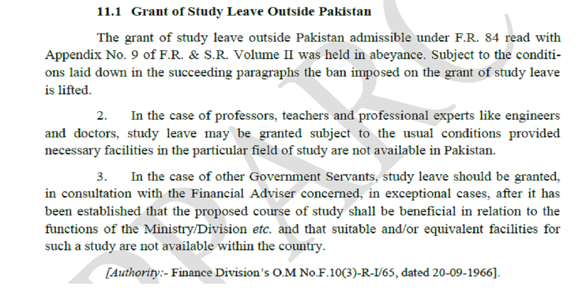 I am sharing the rules for the Grant of Study Leave Outside Pakistan. These rules are extracted from the ESTA CODE. These rules are for teachers, professors, professional experts, such as Doctors and Engineers, etc. The details are as follows: