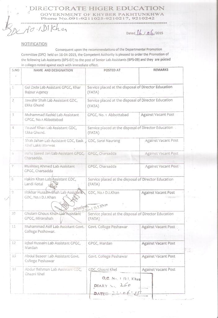Our dpc meeting for the promotion of Laboratory Assistants in the colleges Directorate(KPK) has been done or still awaited.plz tells me about that.