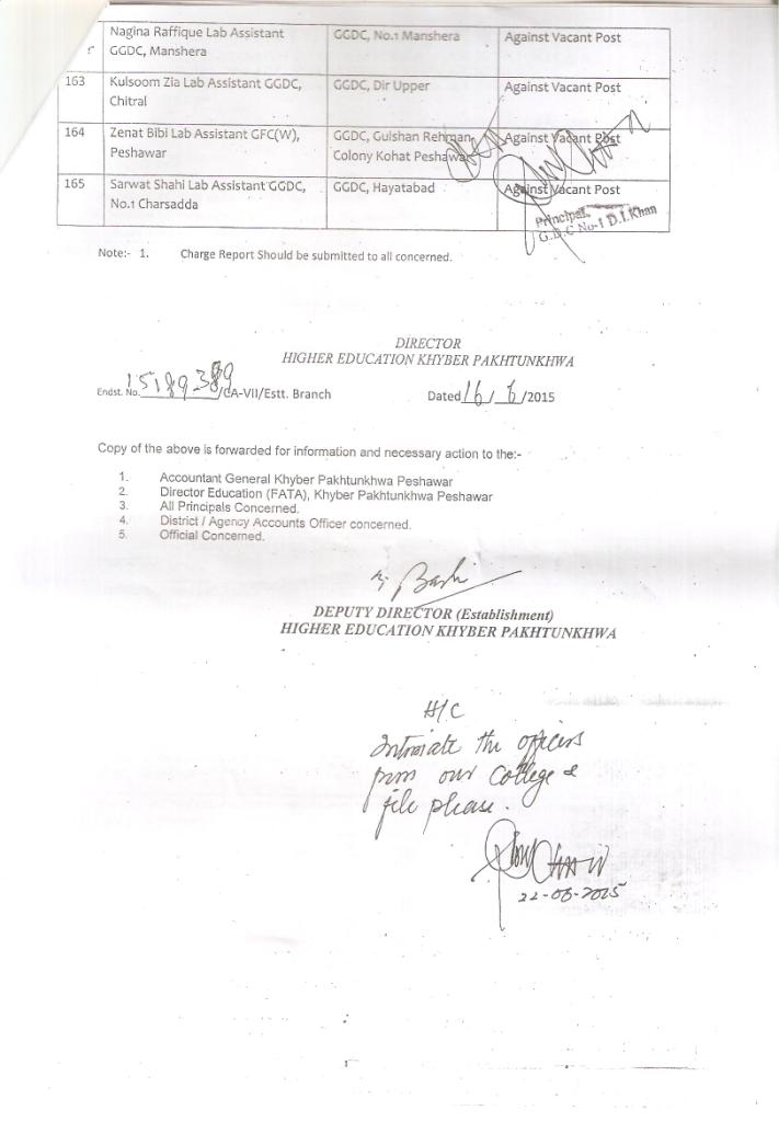 As regard posts of Laboratory Assistants working in FATA Secretariat, the Administrative Department may itself take up their cases with FATA Secretariat for similar action. Special thanks to Mr. Murid Abbas for sending the copy of the Service Structure for Laboratory Assistants in KPK for the information of all the related employees.