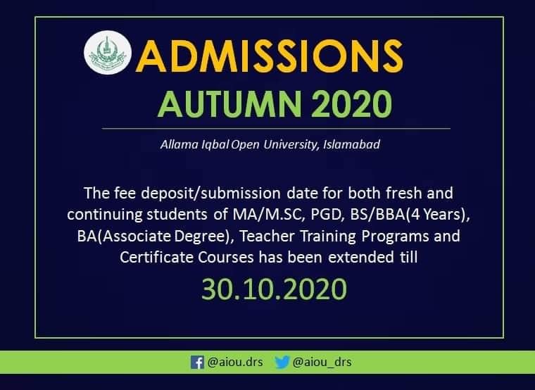 Allama Iqbal Open University (AIOU) Admission Open Autumn 2024