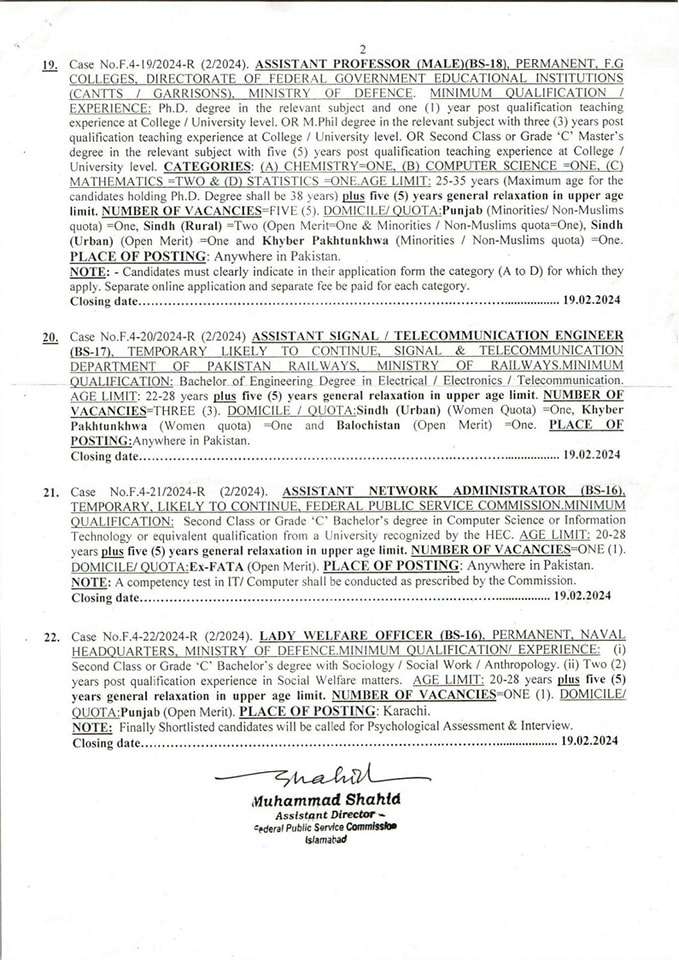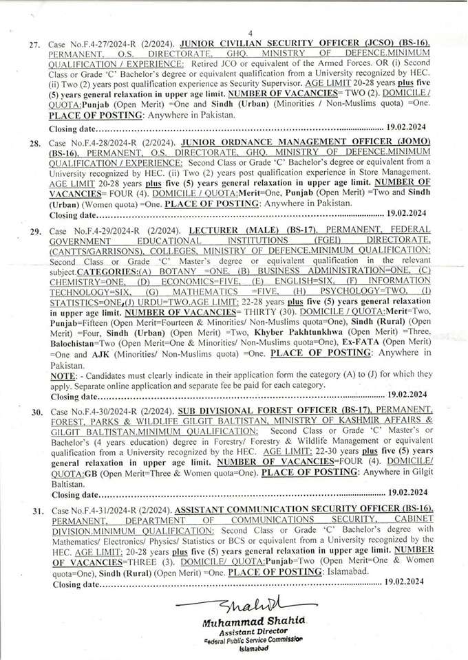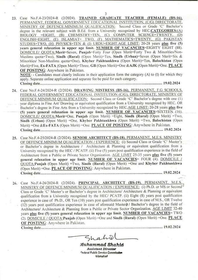 Federal Public Service Commission has announced many jobs in various Ministries, Divisions, and Departments of the Federal Government. Most of the jobs are for the teaching cadre in the Federal Directorate of Education and FGEI (C/G). The details are as under: